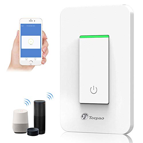 Teepao スマート Wi-Fi ライトスイッチ Alexa Google アシスタント ワイヤレススマートウォールスイッチ リモートコントロール機能 ハブ不要 単極のみ ニュートラルワイヤー ETL認定 ブラック 6907637311322