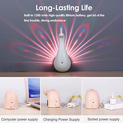 - USB充電式バッテリーPeacockプロジェクター1200 mAhのバッテリーを実行でき、3 – 4時間です。にプラグが不要でできます。があります。それには、任意の場所に配置することができます。ピーコックランプ、寝室、リビングルーム、ベビールーム、子ども部屋、廊下、通路、バルコニーの調査とのパーティに大幅に使用され