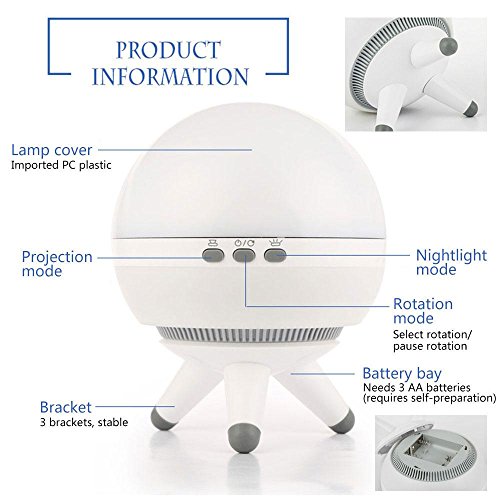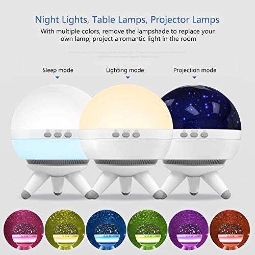- 3つの作業モードがあります(スタープロジェクター/ Night Light /テーブルと7色ホワイト、イエロー、グリーン、シアン、パープル、ライトオレンジ、レッドが使用されます。これをスタープロジェクターとして作業することができます。Fun &利便性が確保されます。