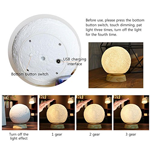 - 敏感なタッチコントロール : 月のナイトランプの明るさを変えることができます。長押しでランプの明るさを滑らかに調節できます。明るさは簡単に調節でき、お子様が睡眠するのに適した明るさで、家の装飾にも適しています。