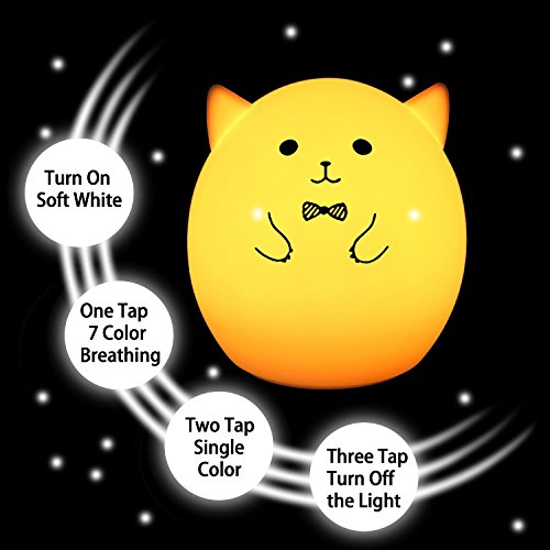 teepao LovelyソフトシリコンLEDカラフルなベビーナイトライト、USB充電式子供夜ランプウォームホワイト、呼吸7-color、子供1つ3色照明モードの大人のベッドルーム(6272875666320