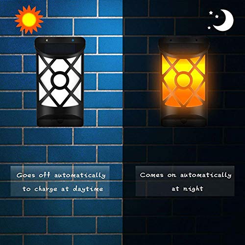 *ちらつき炎壁ライトは防水性と耐久性で、用に特別に作られてい屋外でのご使用に最適です。内蔵の充電式リチウムイオン電池、電気がない太陽電池式、電源必要ありません。