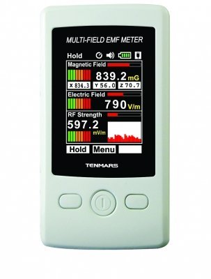 4 digits, 2.4 inches color TFT LCD. - 3 measurements in one meter: Electromagnetic Field (3 - axis). Electric Field. RF Strength Field. Data Hold (HOLD).