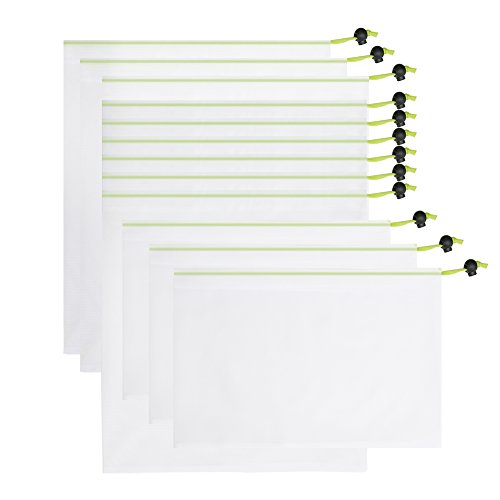 Tenn Well 果実袋, 12枚入り 軽量 再利用可能 メッシュ巾着袋 野菜 果物収納用 (白い)