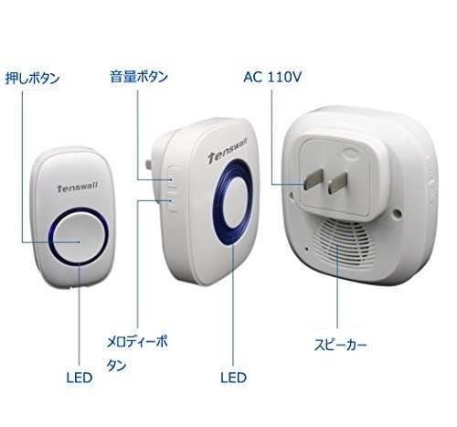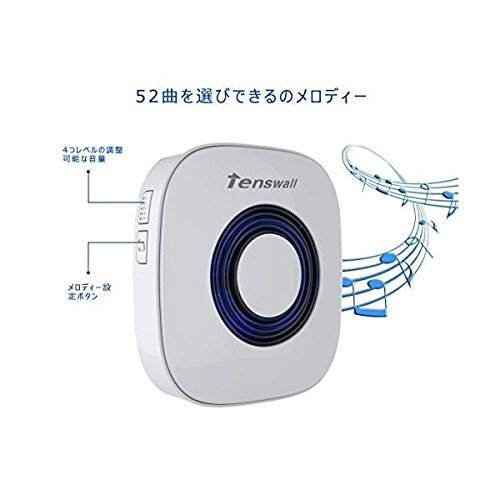Tenswalll® (改良版)ワイヤレス ドアチャイム ドアベル 、呼出音楽52メロディー選択可、呼び鈴玄関 、チャイムセンサー、 呼び出しチャイムセット 受信機2個 (AC式+電池式)、送信機1個 (白い) 「並行輸入品」