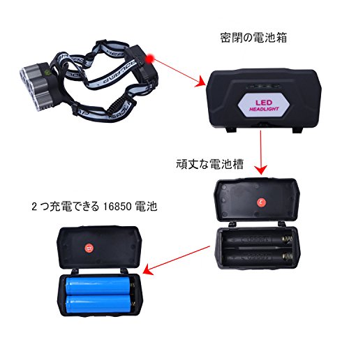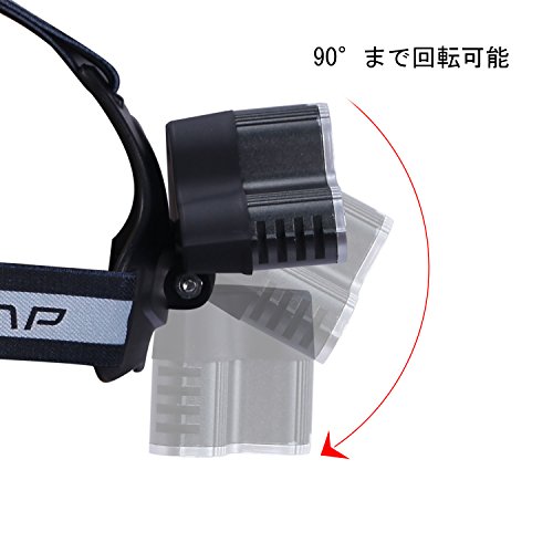 - 照射方向は90°まで回転可能、お好きな角度でご使用頂けます。バンドは調整可能なので、サイズに合わせて調整できます。野外での作業、夜釣り、登山、自転車ライト、キャンピングに大活躍のヘッドライト。