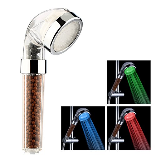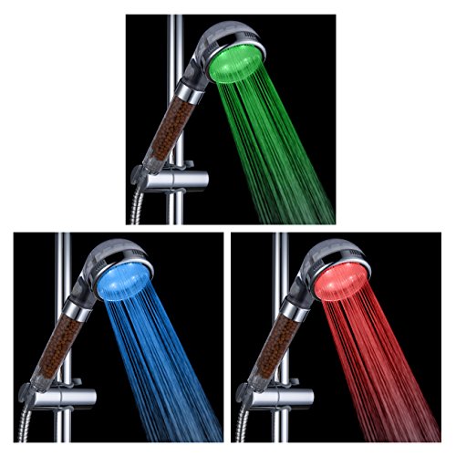 Tera® LED シャワーノズル シャワーヘッド 節水 塩素除去 感温式 3色 カラーの水が出る 電源 電池 不要 水圧 発電 タイプ マイナスイオン 炭粒子入り Led Shower Head