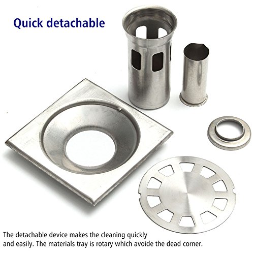 説明を示しています。10 x 10 cmの正方形ステンレス製浴室床水を加えるか、排水ストレーナFliterこの床ドレインはステンレススチール製の特性の耐食性、丈夫、錆防止、アンチブロッキングと抗臭です。に表面処理方法が適用されます。パイプラインを効果的にブロックしてからのゴミ、髪の毛を防ぐ: )仕様:材質:ステンレススチールサイズ:約10 x 10 cm wiredrawing処理スーツ:バルコニー、シャワールーム、バスルーム、廊下、屋根パッケージには以下が含まれます: 1 x床ドレイン