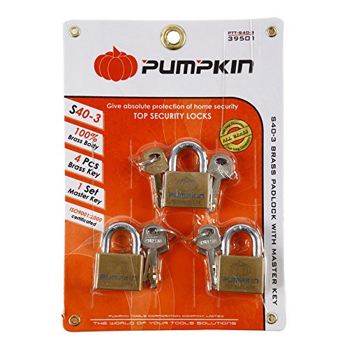 Pumpkin s40 – 3ショートシャックル真鍮南京錠キーホームTopセキュリティロックツールスチールカバープレート( ptt-s40 – 3 : 39501 ) 3南京錠セット、パック1個。