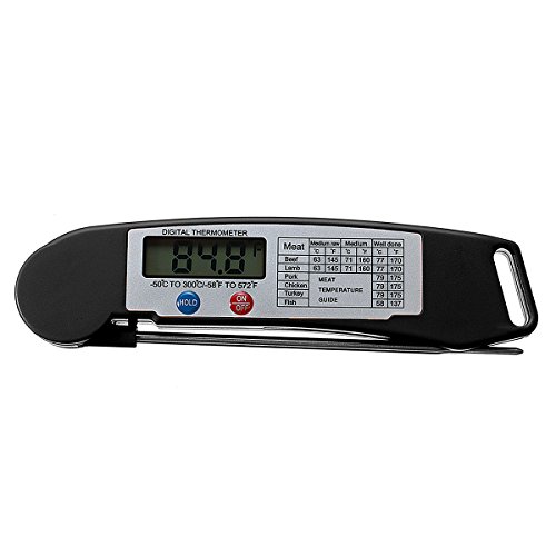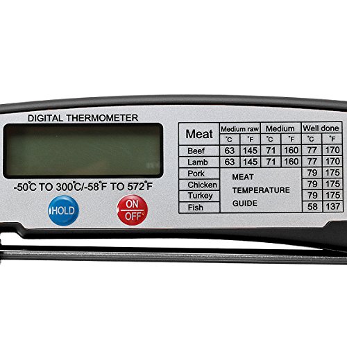 - le内の単位表示選択スイッチバッテリー収納部のカバーの下に"華氏または摂氏" 4。最も太い部分に挿入プローブによってテスト温度食品5を参照してください。"ホールド:ボタン:前からプローブ食品温度維持され、「Hold」ボタンを押して再度押すことまで読み取り6を参照してください。ユニットが自動的にボタンを押したがない場合は、10分後にオフパッケージ含まれています1 xデジタル折りたたみプローブ温度計1 x英語マニュアル