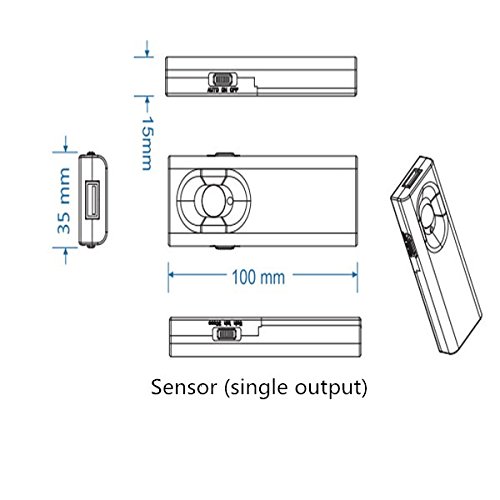 仕様:アイテムの種類:キャビネット用ライト光源: LED照明色:ウォームホワイト電源供給: 3 x AAAバッテリ電圧: 4.5 V USBライトパワー: 0.5 Wセンサーエンジェル: 90度の照明: 120 °感知距離: 1 mシャイン遅延時間: 30秒/ 1分/ 5分寸法: 100 mm L x35 mm W , H機能が導入されています。3機能ギア選択: 1で構成されています。オフ-- LED外出させて25秒2で構成されています。上-- LEDロング明るい3を参照してください。オート-- LED 30秒/ 1分/ 5分後に外出場合に使用されます。ほかの検知のみ暗闇でモーションが検出とオン電池式: 3 x AAA電池(含まれていない)を搭載した信頼性と安全を使用電池への損傷を防ぐためライト照明の時間と明るさが損なわない場合の電池はフル充電3 X AAA電池でインストール:バッテリーボックスを開いて簡単にロードティアオフデスクまたは壁にあわせてテープ、清潔後は、そのからの磁気ストライプを削除する変更バッテリー