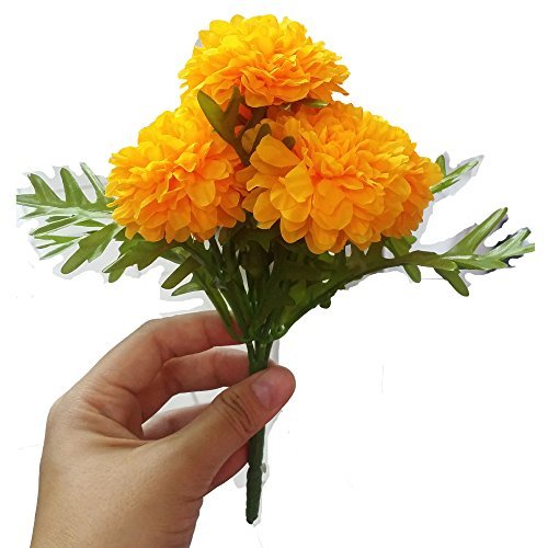 ( Pack of 3 )タイ人工イエローMarigold Bunch、人工花、Marigold Flowers ,イエロー花、Marigoldイエロー、Calendula officials ( 5 Stemあたり1ケース)