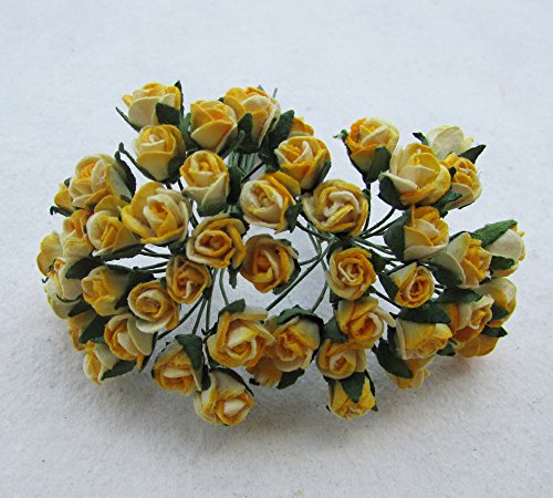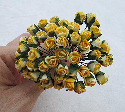 - 25個の2トーンイエローバラの花の和紙の花のスクラップブック、カード5 X 7 mmウェディングドールハウス装置