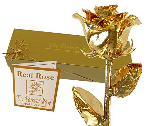 24Kt Yellow Gold Trimming.Real Semi-opened preserved roses coated in clear Lacquer.The care that is lavished on creation of these popular gifts shows clearly.The natural beauty of real semi-opened roses is preserved with a coating of clear lacquer, and enhanced with 24kt gold.Stems are approximately 12 long.These special gifts are given the representation they deserve - elegantly wrapped in gold tissue and placed in a gold two-piece gift box.Gold 24kt Yellow Gold Approx Wgt 51.2 grammes Finish Satin Colour Gold Height 30cm long Availability In Stock Shipping Usually in 24 to 72 hours Notes Colour and Height may have slight variations" Free Standard Shipping!.100% Satisfaction Guaranteed!.30-Day Return Policy.Sku# TL61-9140
