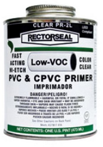 Meets ASTM F 656 specifications. CLEAR PR2L Low VOC Hi-Etch PVC and CPVC Primer with Quart (12 cans). Fast acting, hi-etch primer prepares the surfaces for superior bonding strength.
