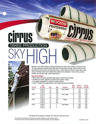 High capacity and density for fast, complete paint coverage. Lowe spatter and very durable, great for rough surfaces. The double-thick core resists water, solvent and cracking. Use with all flat paints, stains and sizing's. Made with pride in the USA by Wooster.