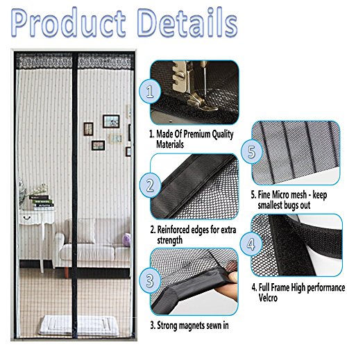 - 最高のマグネットスクリーンドア:最高級のメッシュ製、メッシュサイズは39x83インチ。36x83インチのサイズまでのドアに適応します。(お客様のドアを測定してください。)このスクリーンドアは秋、冬の間は簡単に取り外しが可能です。