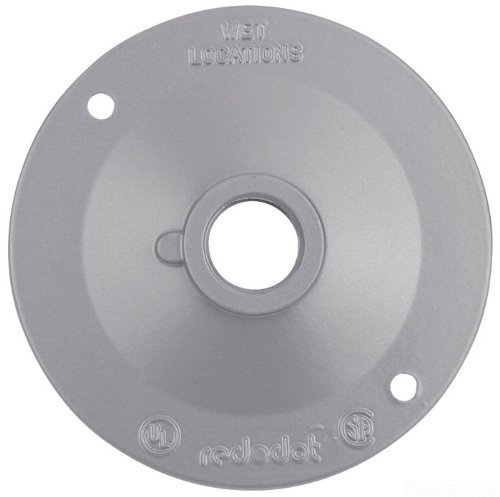 Lampholder Cover; Round; 4-1/8-Inch Diameter; (1) 1/2-Inch Diameter Outlet Hole; Stamped Aluminum Material; Silver Color; Inclusion Gasket, Screws; 1 Standard Package.