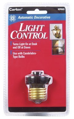 Candelabra Photo Light Control, Fits Standard Base Socket & Coverts Down To A Compact Mini Candelabra Base Light Bulb, Screws Into Standard Light Socket & Automatically Turns Candelabra Lights On At Dusk & Off At Dawn, Only For Use With Incandescent Candelabra Type Bulbs, 120V AC