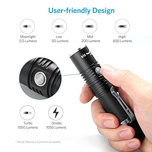 ThorFire TK15 懐中電灯 1050ルーメン・6モード・CREE XP-L2・IPX8 LEDライト ハンディライト 緊急事態・アウトドア・日常生活用 18650電池対応