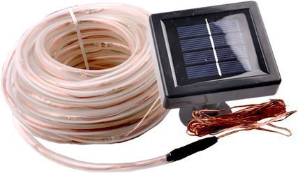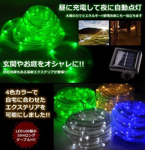 夜になると自動点灯 LED100個搭載で 長さ8m ソーラーLEDチューブ イエロー