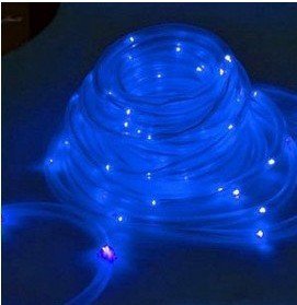 夜になると自動点灯 LED100個搭載で 長さ8m ソーラーLEDチューブ ブルー