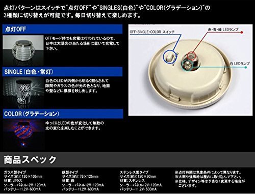 ソーラー 式 防滴加工 LED イルミネーションガーデン ライト 4色 自動点灯 硝子 タイプ