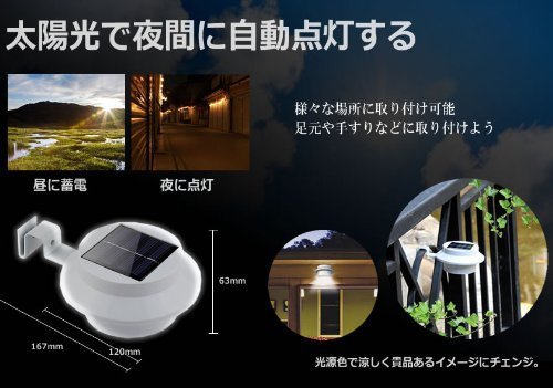 太陽光充電で夜間に自動点灯します