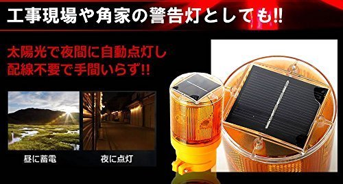 - 昼間に太陽光で内蔵バッテリーに充電し夜間に自動点灯して周囲を照らします配線不要で手間いらず!!