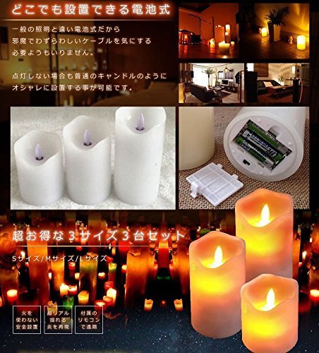 ワイヤレス LED キャンドル ライト リモコン 付き 3個 セット