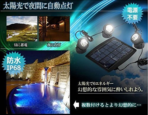2.LEDライトをつけたい場所に、たとえば芝生、水中などに固定してください。