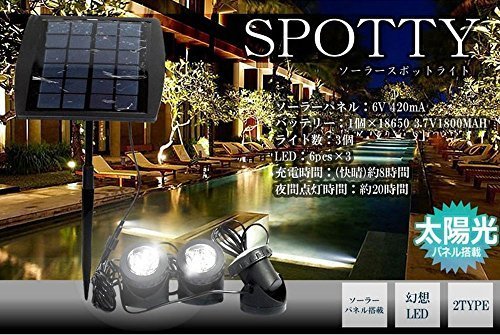- カラー:カラフル ソーラーパネル:6V 420mA バッテリー:1個×18650 3.7V1800MAH ライト数:3個 LED:6pcs×3 充電時間:(快晴)約8時間 夜間点灯時間:約20時間
