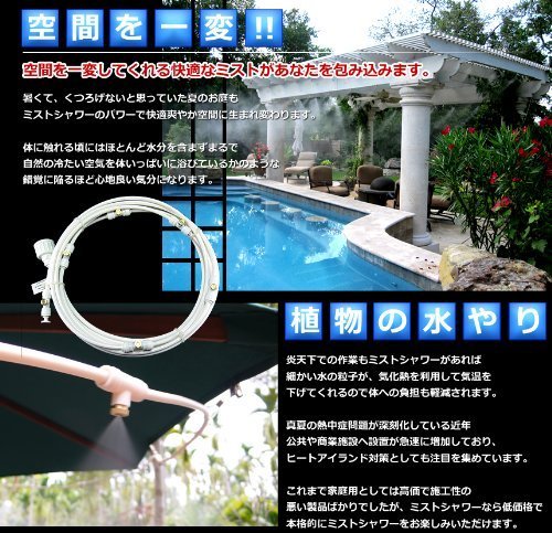 夏を涼しくミスト シャワー ノズル ヘッドホワイト 9メートル 16個
