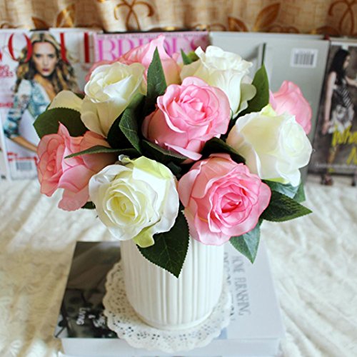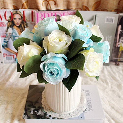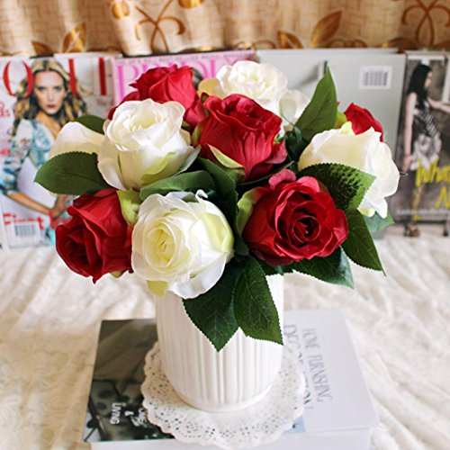 Tiean人工フェイク花シルクバラ花柄ウェディングブーケブライダル装飾 ホワイト