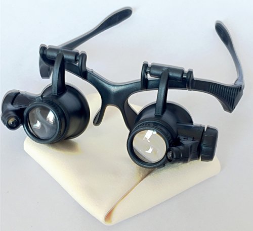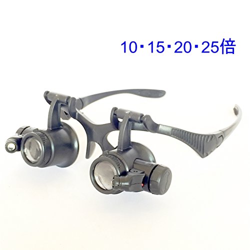 LED ライト 付き ヘッドルーペ 眼鏡式 拡大鏡 (20倍 両眼)