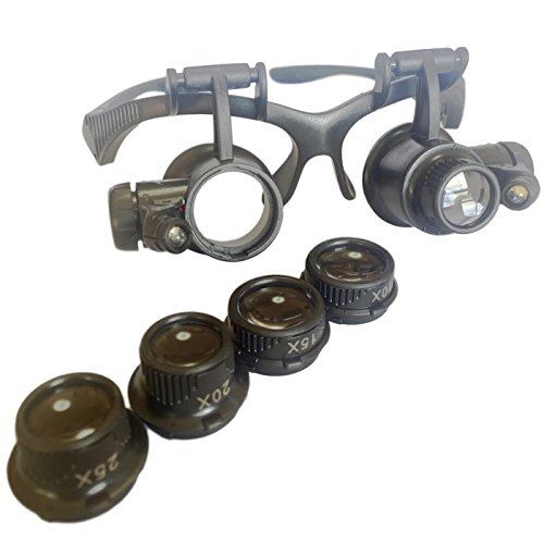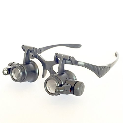 LED ライト 付き ヘッドルーペ 眼鏡式 拡大鏡 (10・15・20・25倍)