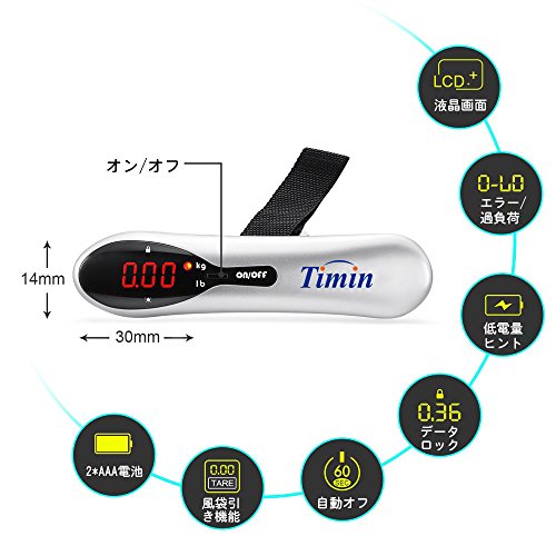Timin デジタル吊りはかり LED 携帯式 荷物 旅行はかり 最大50kgまで 風袋引き機能付 旅行 アウトドア ホームに最適