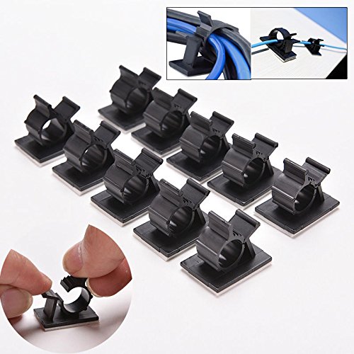 Hanbaili ケーブルクランプオーガナイザー、10 PCSワイヤーマネージメントケーブルクリップオフィス家庭用 - 黒