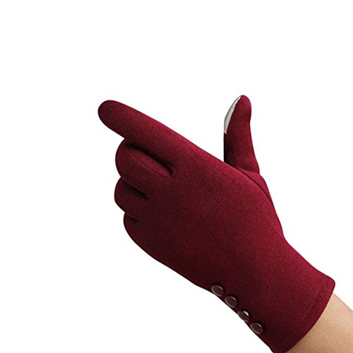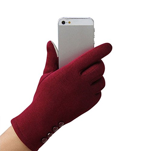 Tiptiper 冬の手袋、レディース冬アウトドアスポーツウォーム手袋タッチスクリーン手袋コットンフルフィンガー(赤)