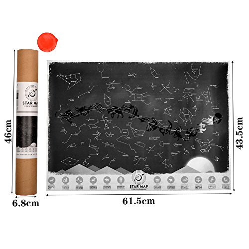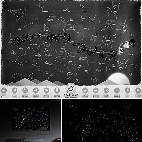 スターマップは、ユニークで機能的で、真に魅力的な星座の地図と同様、壁画の素敵な部分です。 高品質の紙に印刷され、スポットラミネートされたデザインの特徴とは対照的に美しい艶消し仕上げが施されています。 しかし、真の魔法が起こるのは暗闇の中です。 すべての星にはすばらしいグローインインダークインクが印刷されています。これは、星図が実際に夜に生きて、どんな環境でも美しくて珍しいものになっていることを意味します。