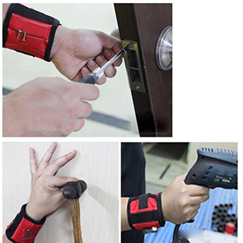 Tiptiper 磁気リストバンド、グリッド磁気リストバンドポケットツールポーチバッグ作業ヘルパーガジェットを保持