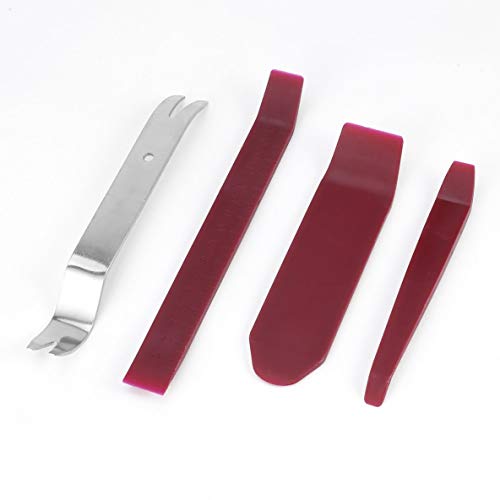 4pcs / setハードプラスチック&金属自動車カーラジオパネルドアカバーパネルトリムダッシュプリーフィッシング修復ツール(色:赤&シルバー)