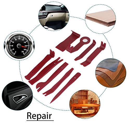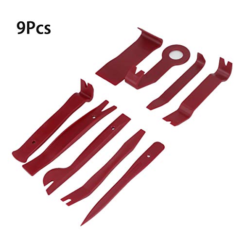 9pcs / setハードプラスチックオートカーラジオパネルインテリアドアクリップパネルトリムダッシュボードの取り外しツールセット(色:赤)