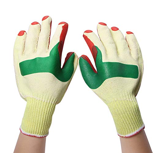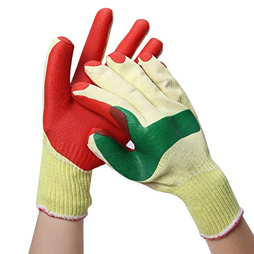 Tivollyff 手袋 作業用 手袋ラテックス手袋安全防護5指磨耗防止ノンスリップ1ペア赤と黄色の鋳造冶金
