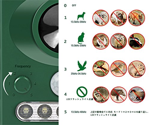 モード5 上記の動物全てに対応 モード1→2→3→4を繰り返し、LEDフラッシュライト点滅