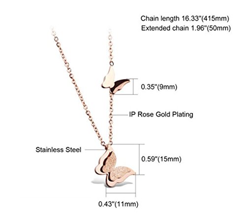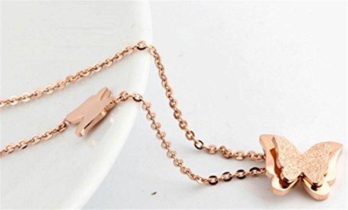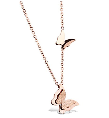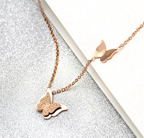 Tmrow 1個 レディーズ ステンレス スクラブ 蝶 ローズゴールド ペンダント ネックレス