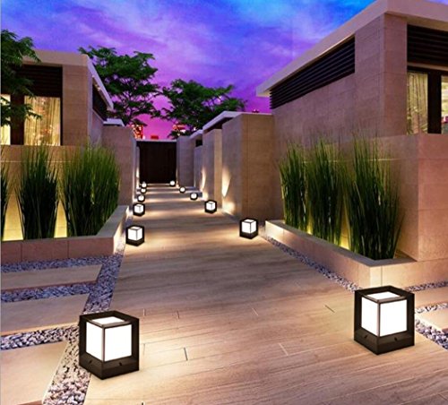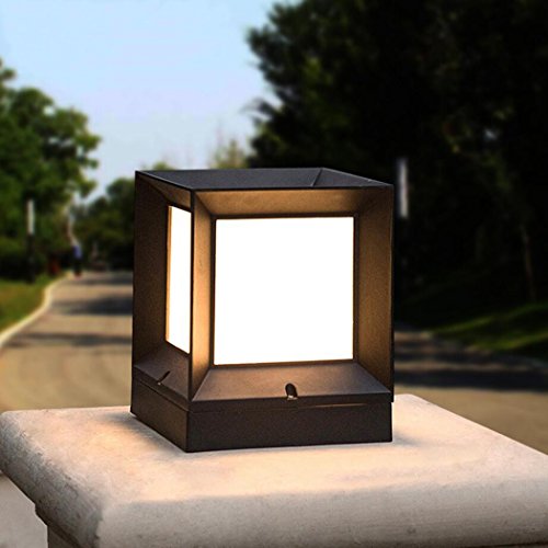 LEDライト ポストライティング現代コレクションエクステリア屋外ポストランタンコラムライト防水フェンスライトLEDキャストアルミアウトドアポスト照明インテリアピラーライトヤードライト(15センチ* 15センチメートル* 18センチメートル)ブラック 家の装飾