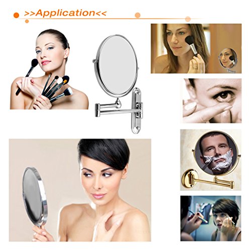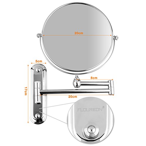 FLOUREON アームミラー 拡大鏡 5倍 折りたたみ 伸縮ミラー 円形 鏡 洗面台に壁付け シェービング、メイクに便利