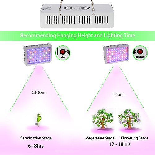 - 異なる成長段階に適した:「VEG」と「BLOOM」とのスイッチボタンは、異なる成長段階での照明効果を調整することができます。