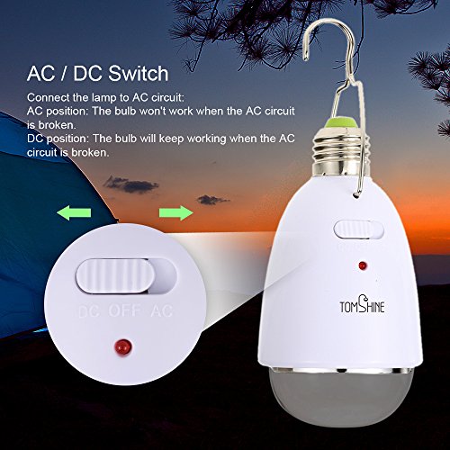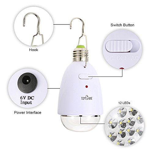 この太陽電球は、独立した可動式の照明システムとして屋外活動に利用することができる。太陽光で充電でき、雨天時はAC回路で充電できます。電球がAC回路に接続され、スイッチが「DC」側に押されると、電球は緊急ランプとして回路が破損したときに作動し続けます。